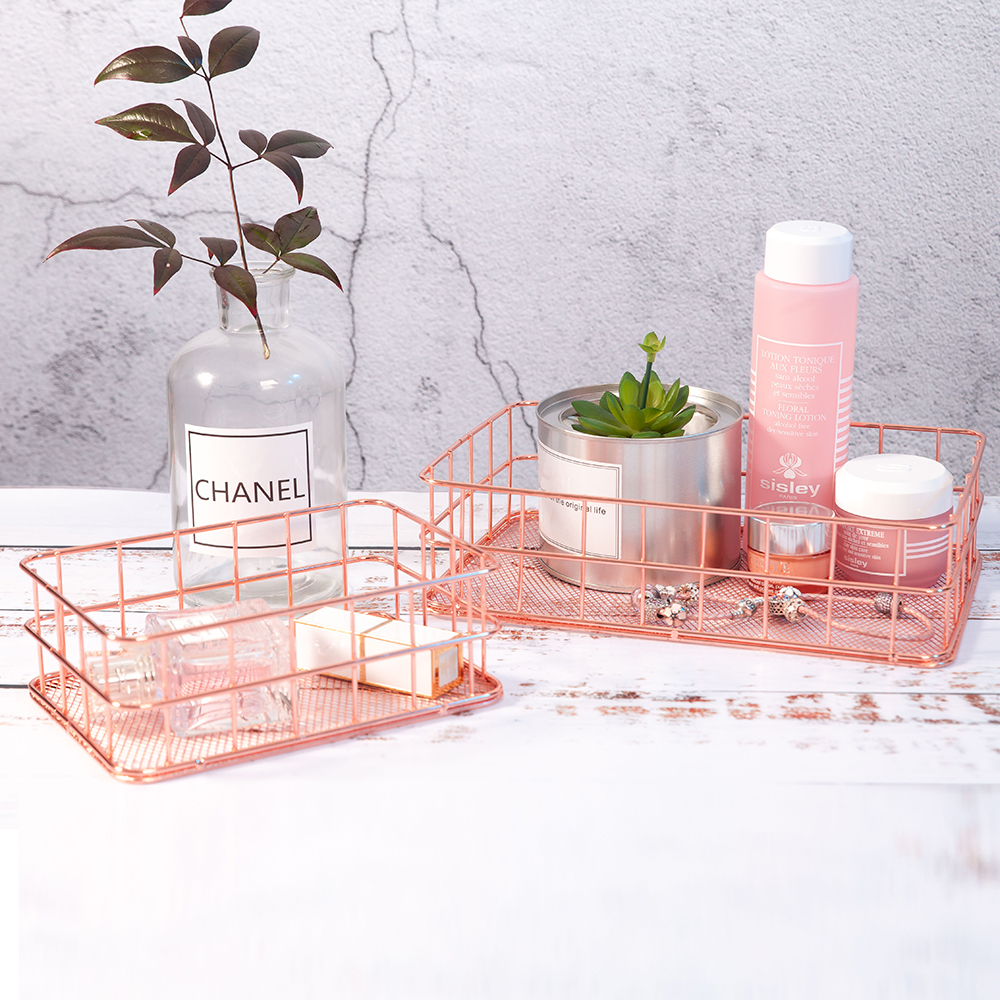Mealivos Elegant Rose Gold Tie Collection Basket Rectangle Debris Girl Desktop table Storage Basket